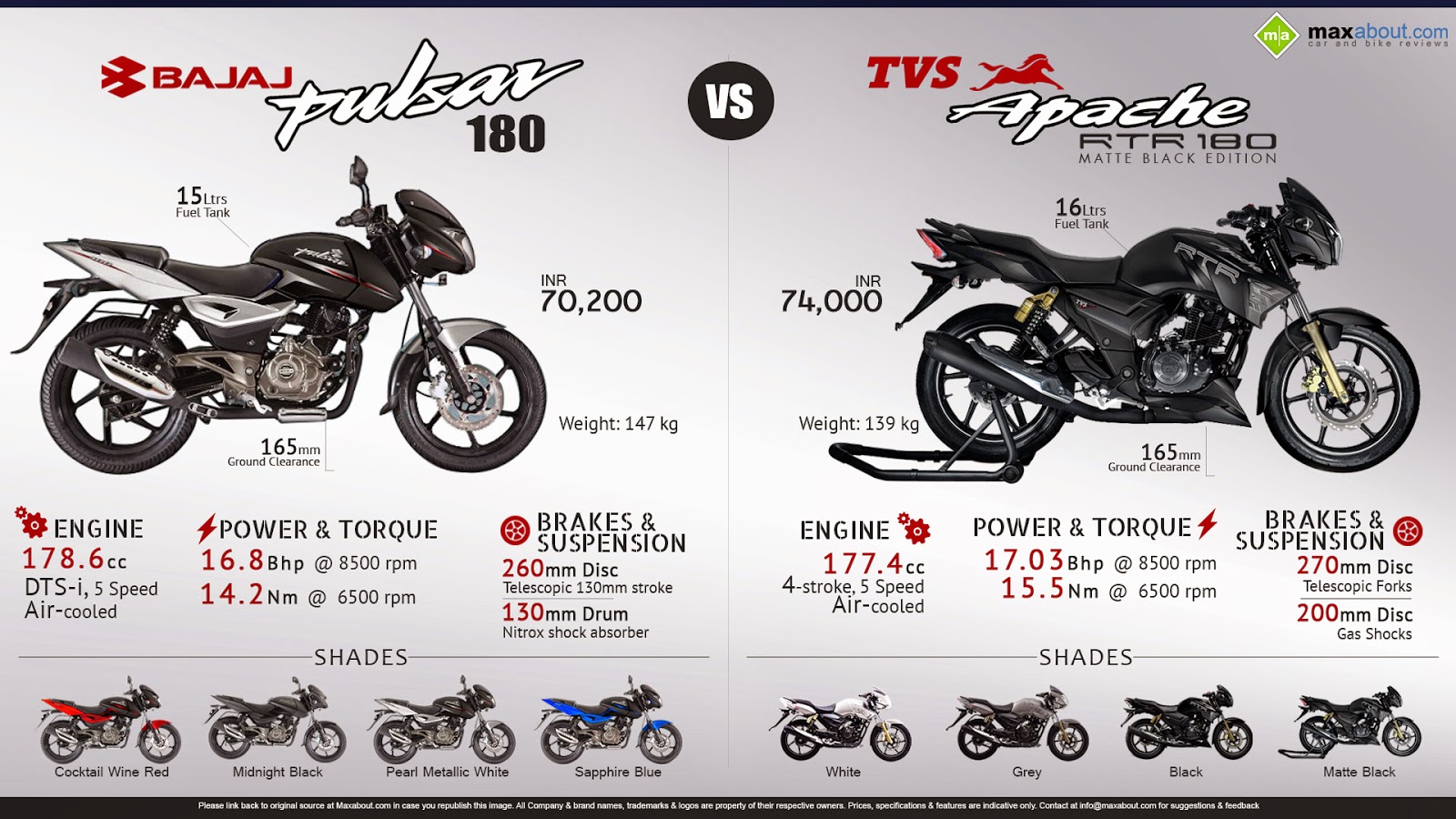 Bikes India Bajaj Pulsar 180 Vs Tvs Apache 180 Rtr Price And Specs
